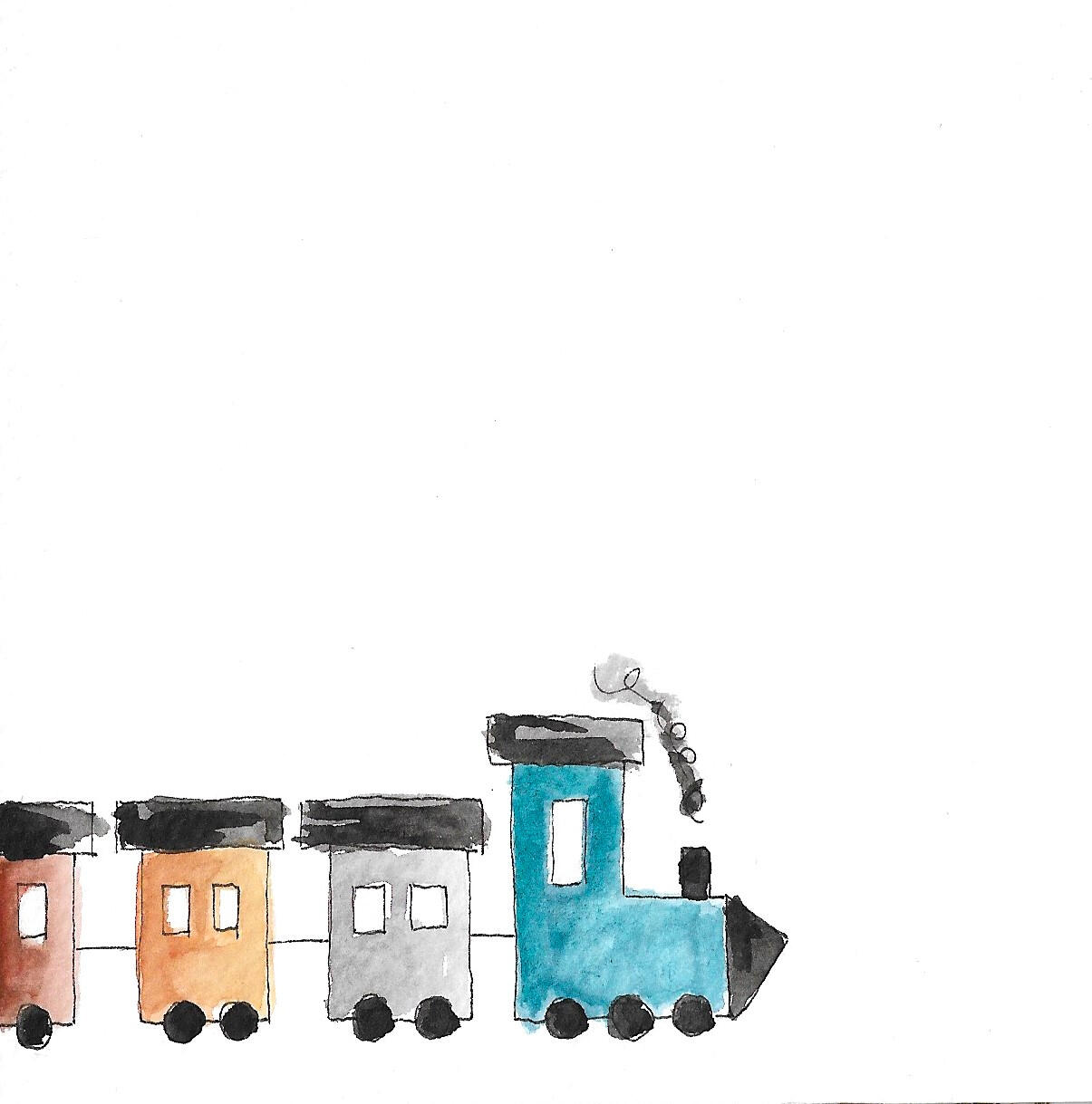 Selbst kreiert, mit Aquarell gemalt, als quadratisches Format (10.5 x 10.5cm) mit passendem Couvert erhältlich.